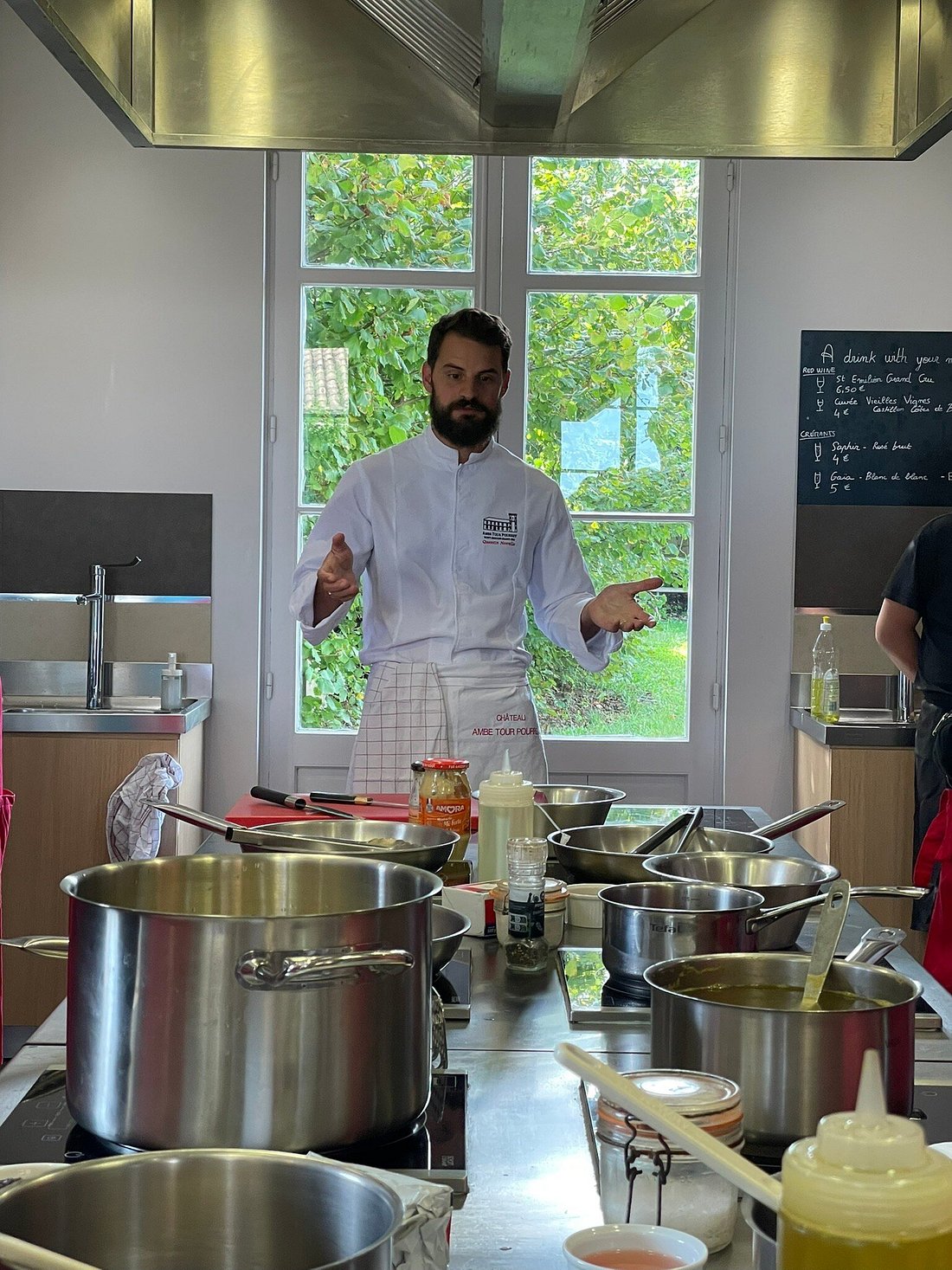 Cap sur la salle à manger du château pour un moment simple et raffiné : vous dégustez vos créations, accompagnées de deux verres de vins rouges issus du vignoble de la famille. Un accord tout en douceur, pensé pour sublimer vos plats.